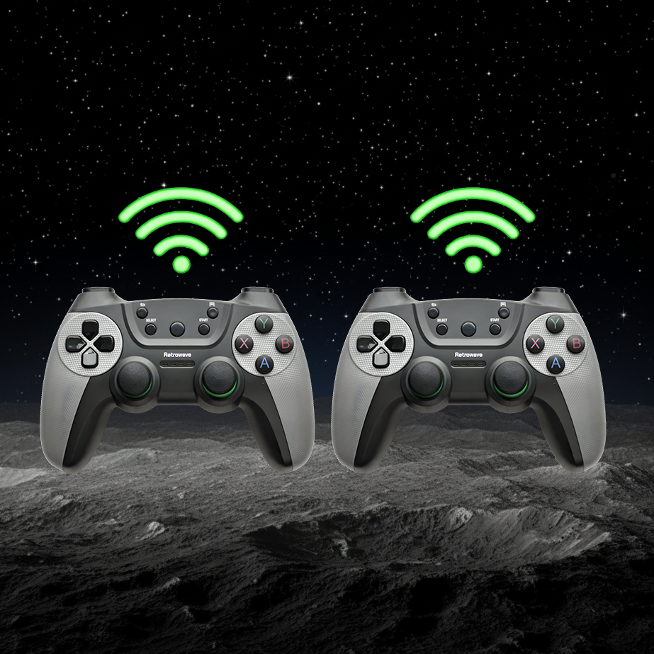 Die Controller sind bereits per USB Receiver mit dem Retrowave G13 Ultra verbunden. Du musst nur die Batterien einlegen, die Controller einschalten und schon kannst du spielen.