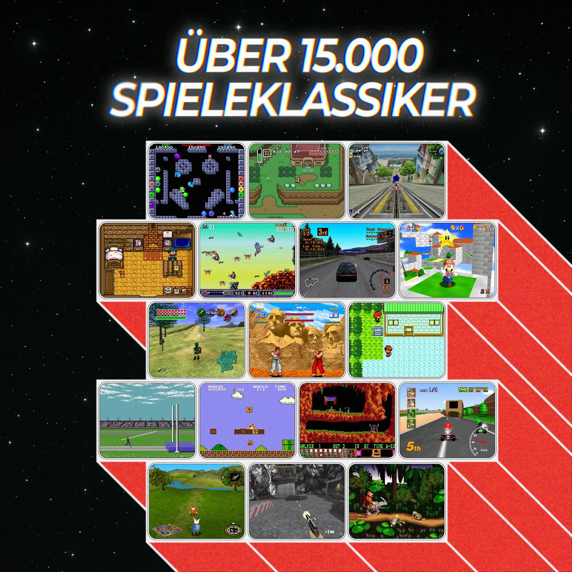 Mit der Retrowave Go 1 kannst du genau dieses Gefühl überall wieder erleben – auf dem Sofa, im Zug oder im Urlaub. Über 15 000 Spiele aus deiner Kindheit. Kompakt in einem Handheld-Design.