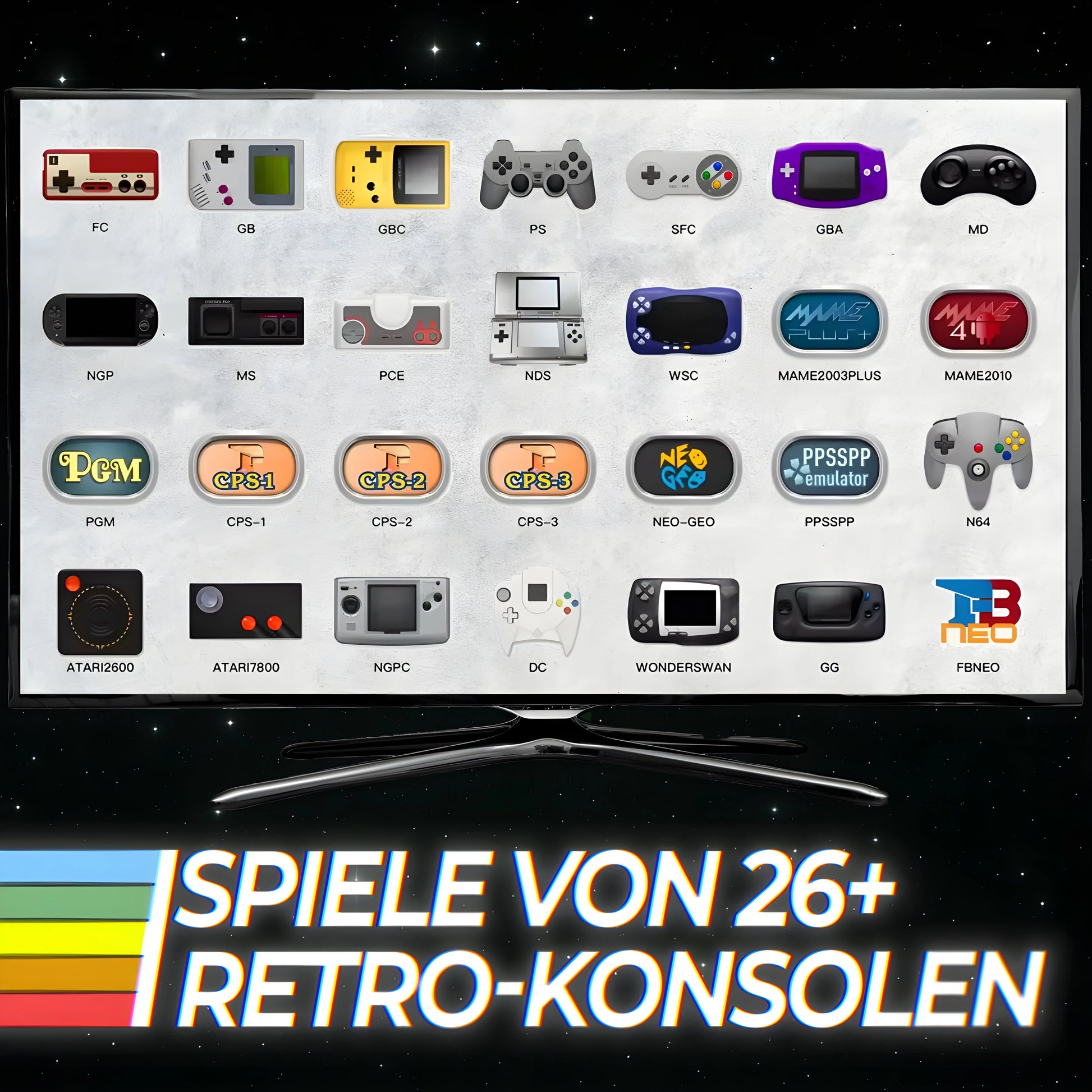 Drücke hier um eine Liste von allen Konsolen, die auf dem Retrowave G11 Pro enthalten sind, zu sehen.